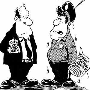 I have spent part of my career living in Red Deer, Alberta. During that time, I was hired on a freelance basis to create editorial cartoons. I was young and it was an exciting job for me. It opened some new doors and even led to two death threats. Still, it was an overall positive experience and one of the best jobs I have ever done. Most of this collection appeared in the Red Deer Advocate during 1987 and 1988.